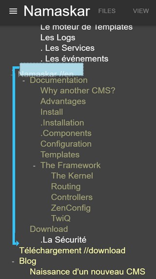 A gauche se trouve l'arborescence des pages du site.